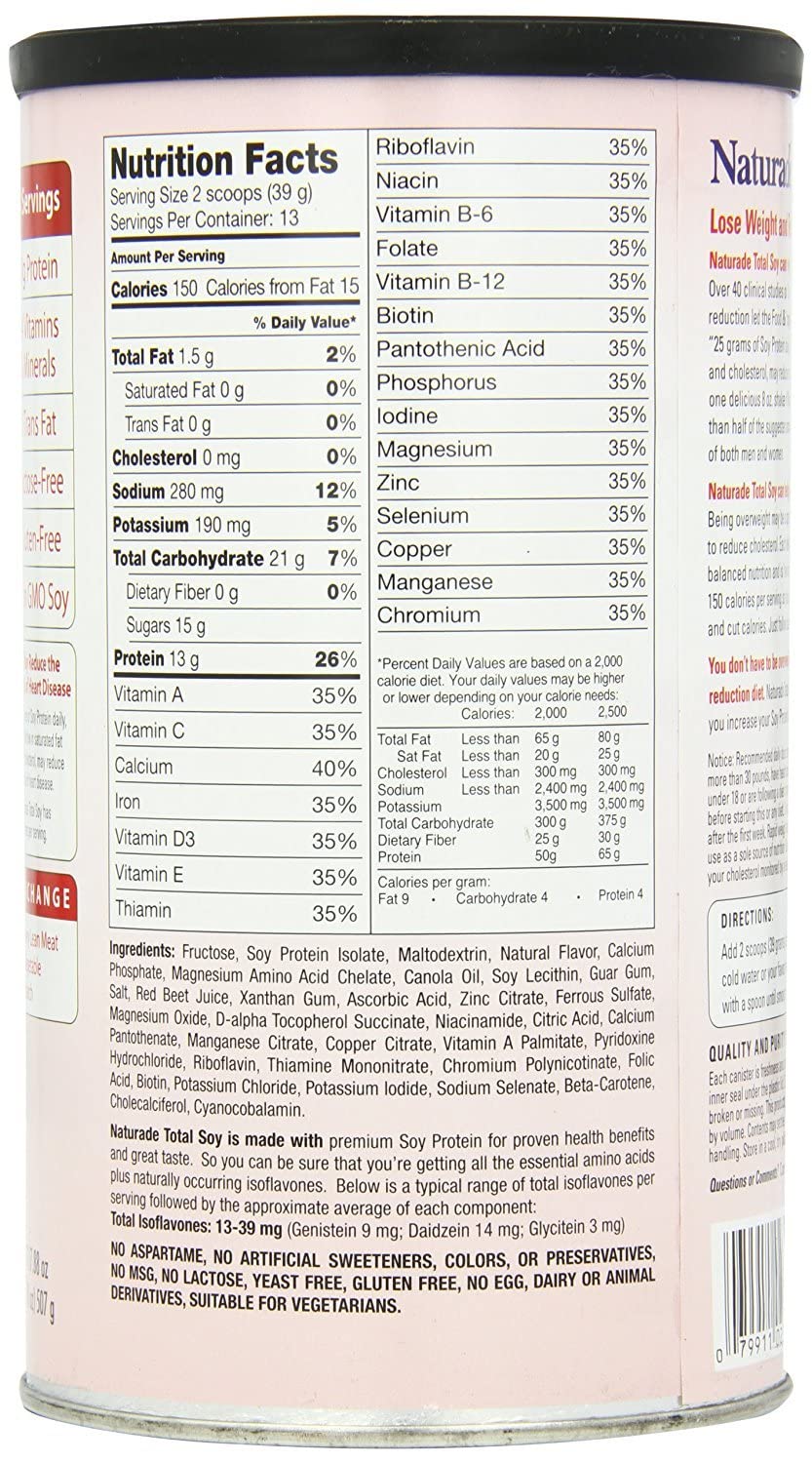 Amazon Com Naturade Total Soy Meal Replacement Soy Protein Blend Strawberry Creme 150 Calories Per Serving 13 Servings Per Tub Health Household
