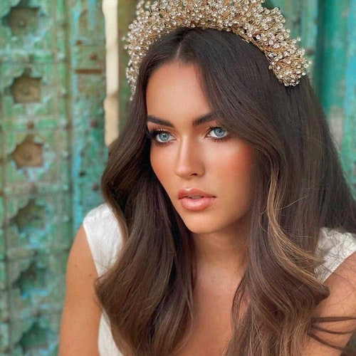 Bridal Gold Hair Jewelry Rhinestone Hair Accessories Hair Band Etsy Uk